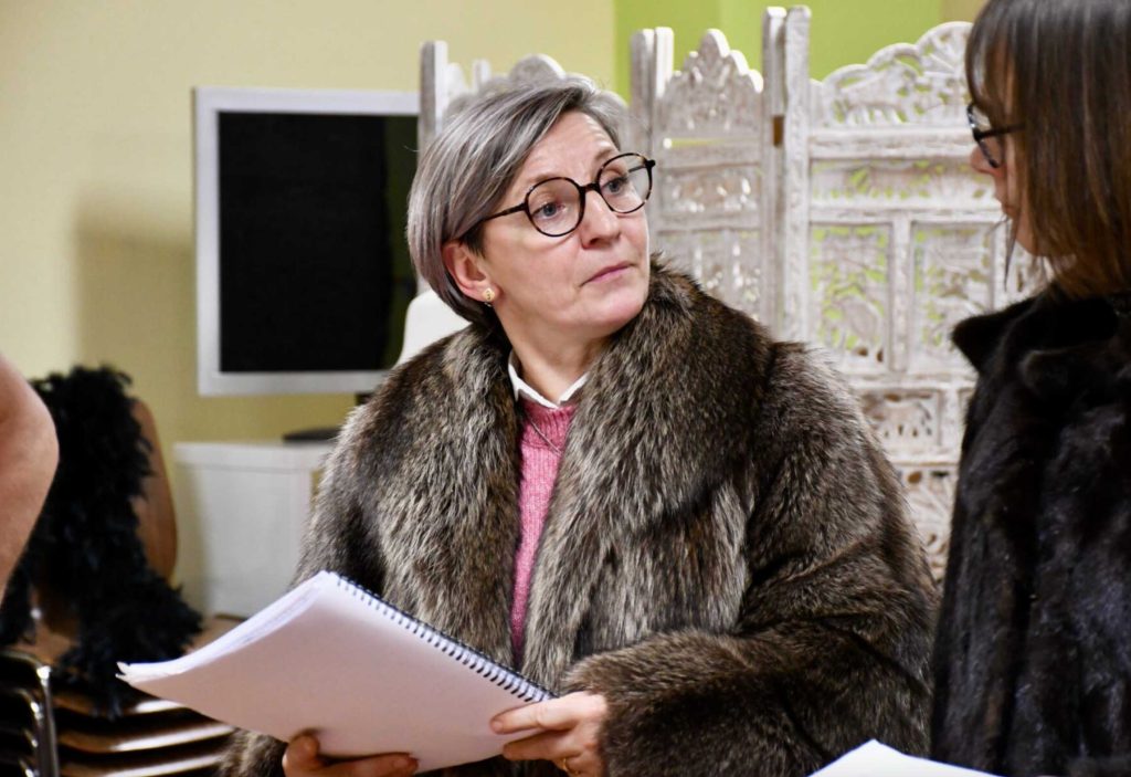 Les acteurs s’échangent les répliques en alsacien, avec les intonations et l’attitude attendus pour leur rôle. Béatrice Vonesch, la metteuse en scène, observe. Comme la plupart des acteurs, elle a le texte à la main. Elle corrige, si besoin. « Là, il faudrait que tu te lèves, que tu participes à ce qu’il se passe », glisse-t-elle par exemple à Magali, qui incarne Charlotte.